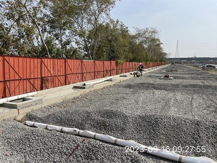 新工處表示,高雄新市鎮1-2號道路開闢工程及岡山區大遼路拓寬工程皆導入低衝擊開發,人行道面層採用透水磚,底層採用透水混凝土,地表逕流水能下滲至碎石級配儲水層中,若水量過多則可透過HDPE透水管往側溝排放,植栽帶規劃為雨水花園,可暫時貯存雨水,雨水透過下滲過程及植栽根系可達淨化功能,若水量過多則可藉由溢流管排入側溝,可達到美化環境及降低洪災發生之機率。